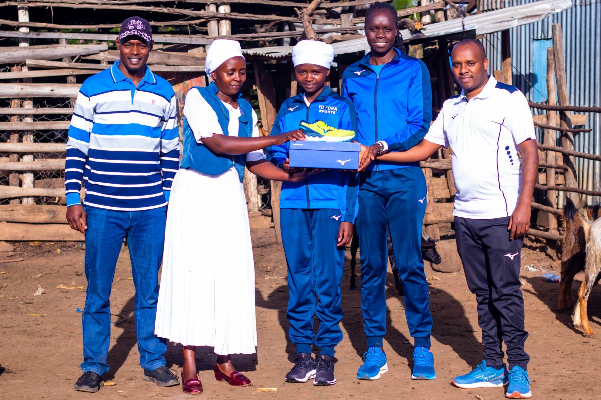 Accompanied by notable personalities such as Peter Njeri (MD Asanteworld Kenya Limited), Mercy Moim, and Edwin Kieya, our team visited her home, where we were warmly received by her family. During this visit, the aspiring athlete received invaluable guidance from experienced professionals. Yokora Sports, in collaboration with Mercy Moim and Edwin Kieya, provided her with top-quality training and running gear, while Mercy Moim generously gifted her sister with track suits and training shoes.